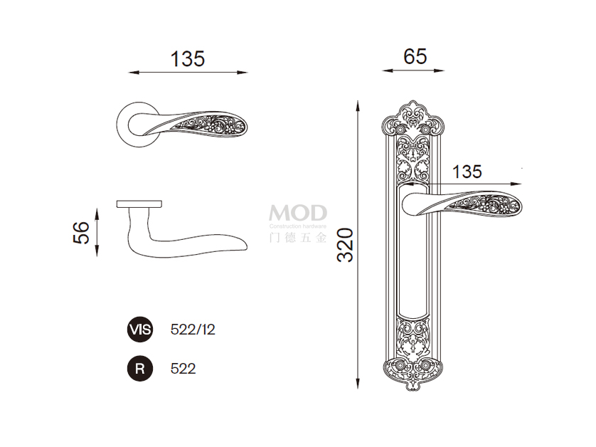 本商品价格包含执手一对、护片(或旋钮)及安装配件,不含锁体锁芯。