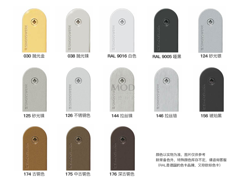 Simonswerk提供TECTUS ®铰链多种优质饰面(特殊饰面颜色需要预定)