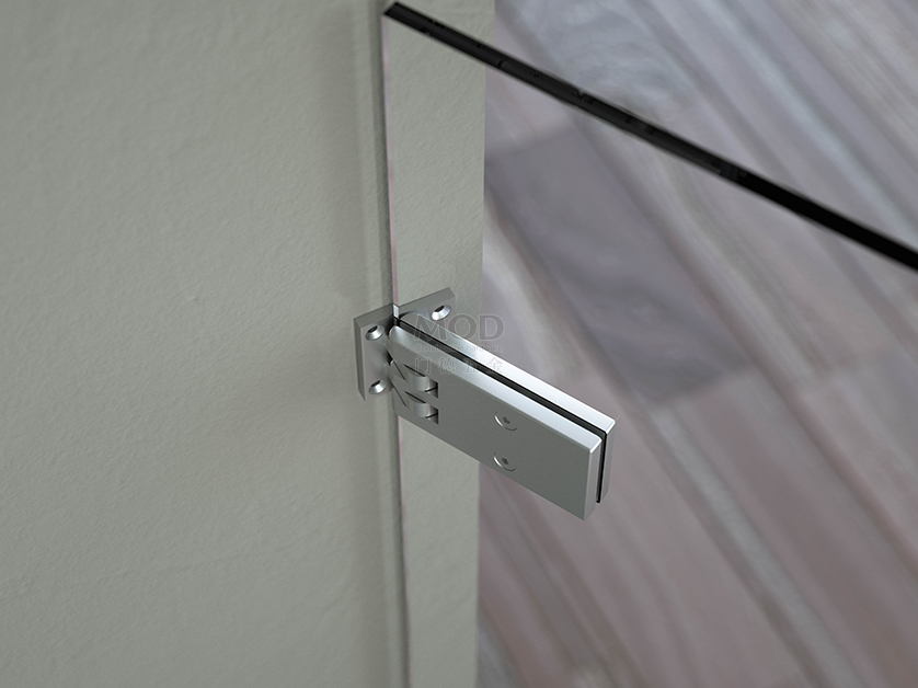 安装在偏置墙与玻璃的淋浴门液压铰链,自动液压关闭动作,可停止在-90°,0°,90°三个位置定位。