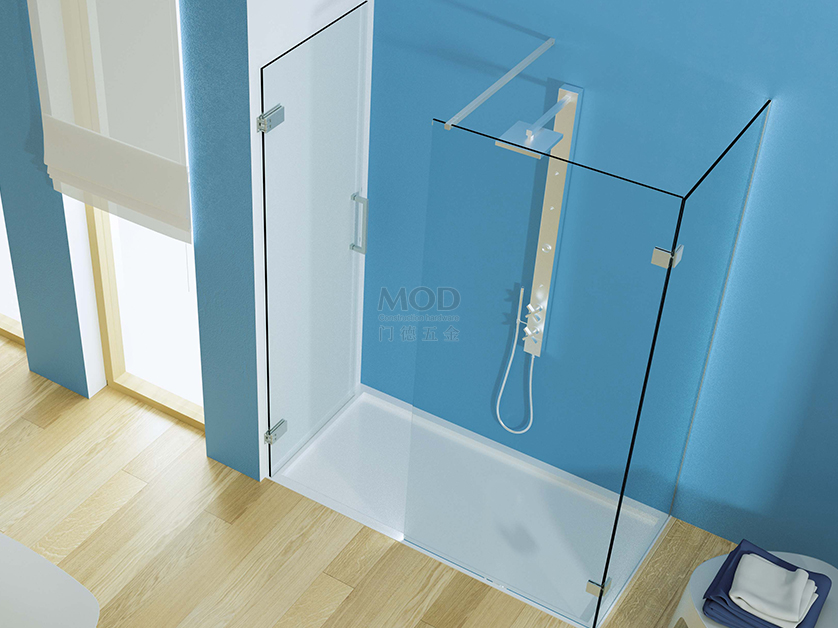 安装在玻璃与玻璃的淋浴门液压铰链,自动液压关闭动作,可停止在-90°,0°,90°三个位置定位。